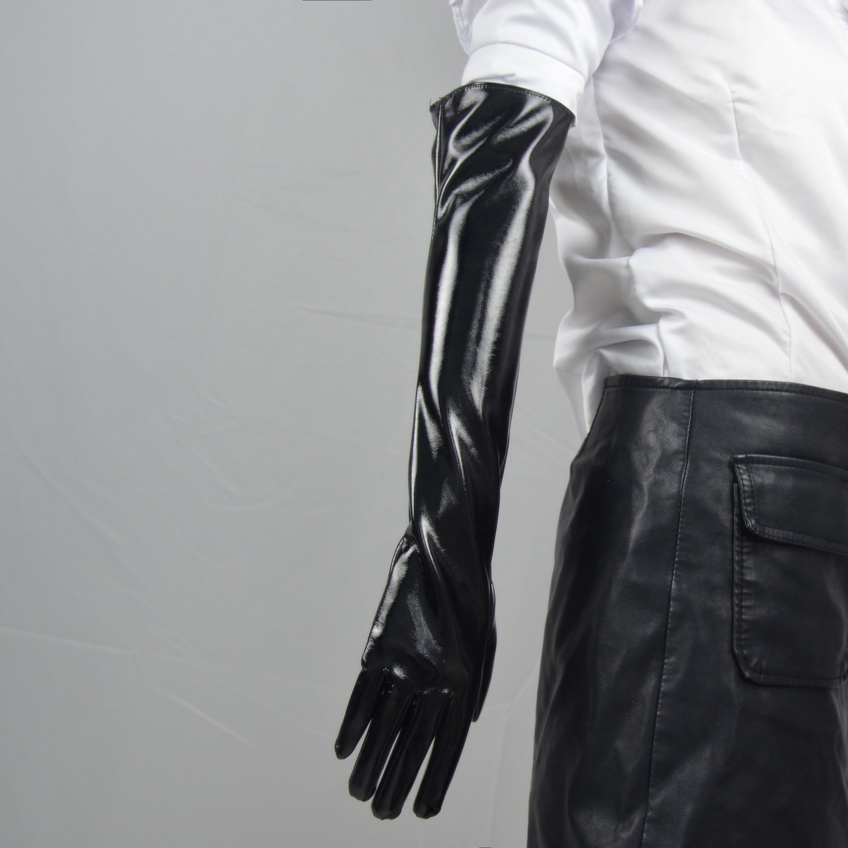 Pu Simulation Leather Gloves Female 50cm Long Section Over Elbow Black Touch Screen Sexy Cos Dance Performance Anime Photo To Keep Warm